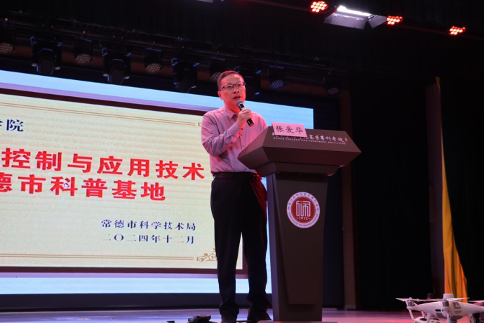 本次活动由湖南文理学院无人机研究所肖次明所长主讲,他围绕低空经济发展、无人机材料技术、结构原理、行业应用及飞行法律法规等内容进行了生动讲解,用通俗易懂的语言揭开无人机控制技术及应用的神秘面纱。