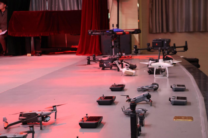 本次活动展示了大疆消费级、工业级、植保机等40 台套设备及电机、电池、飞控系统、传感器等核心部件,搭配应用案例图文与视频,全面呈现无人机在森林防火、电力巡检、快递配送、影视航拍等领域的实战场景。近200名师生们近距离观摩机型、聆听讲解,直观感受无人机技术的迭代升级与广阔前景。