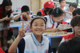 制作过程中,同学们认真细致地完成每一个步骤,不断探索尝试。随着第一盏太阳能双环制作成功,越来越多的作品顺利运转。看到自己制作的双环飞速旋转,同学们兴奋地欢呼起来,教室里充满欢声笑语。他们高举着作品,脸上洋溢出自豪与喜悦。